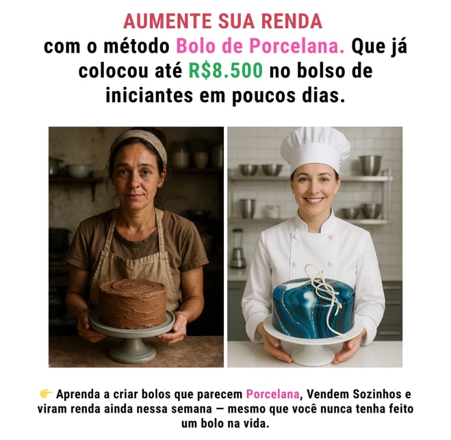 Aprenda a criar Bolos de Porcelana únicos e conquiste sua liberdade financeira vendendo arte comestível de alto valor