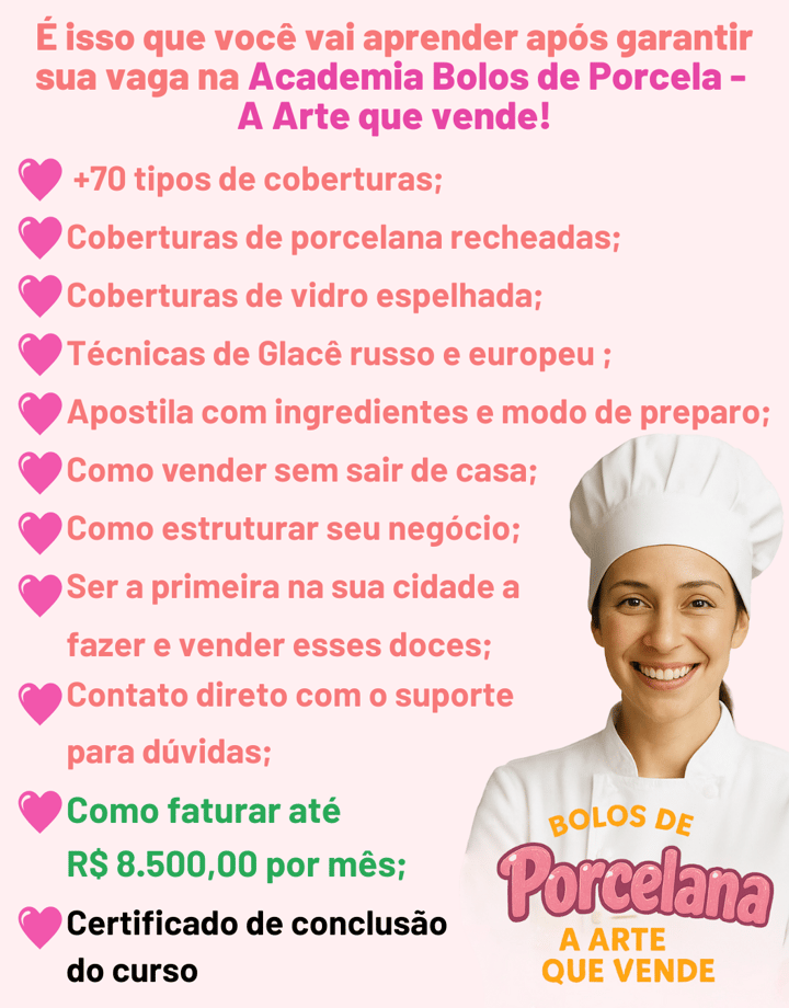 E ainda não acabou: Veja os PRESENTES GRATUITOS que ganha ao entrar HOJE na ACADEMIA BOLO DE PORCELANA